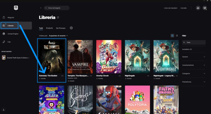 Troverete Amnesia: The Bunker nella vostra libreria di Epic, per installarlo sarà sufficiente cliccare sulla sua immagine: