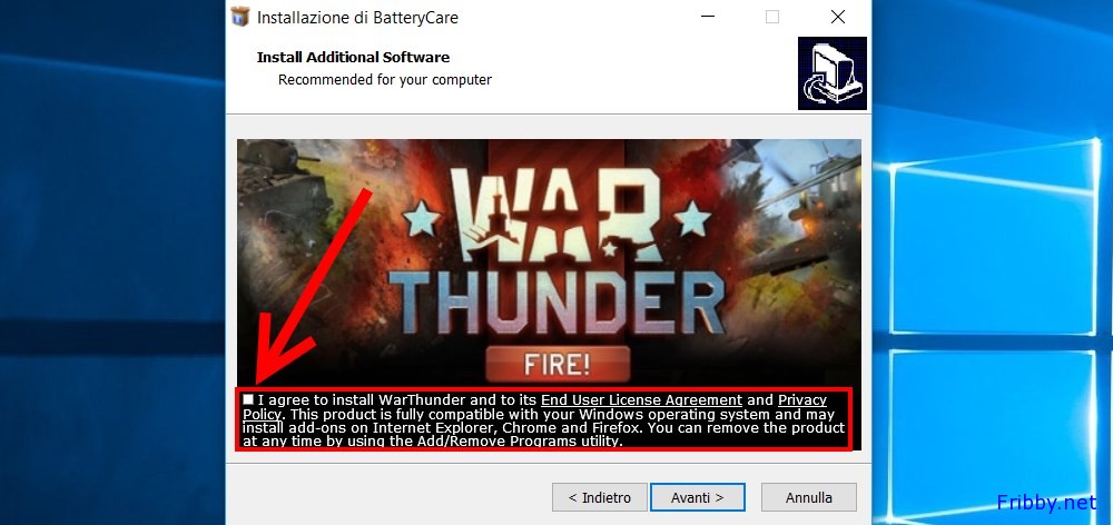 Ci potrebbe essere proposta l’installazione di software aggiuntivo, potremo impediro semplicemente deselezionando la casella: