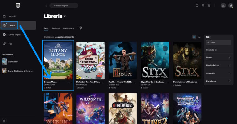 Troverete Botany Manor nella vostra libreria di Epic, per installarlo sarà sufficiente cliccare sulla sua immagine: