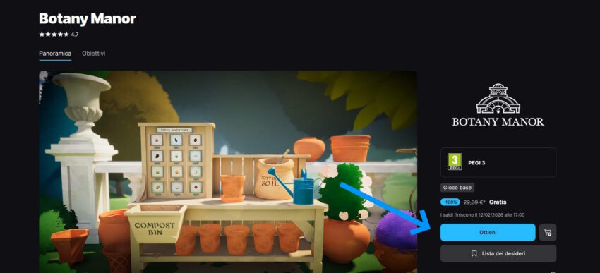 Per ricevere Botany Manor basta collegarsi al sito web: store.epicgames.com/it/p/botany-manor-e7c456.