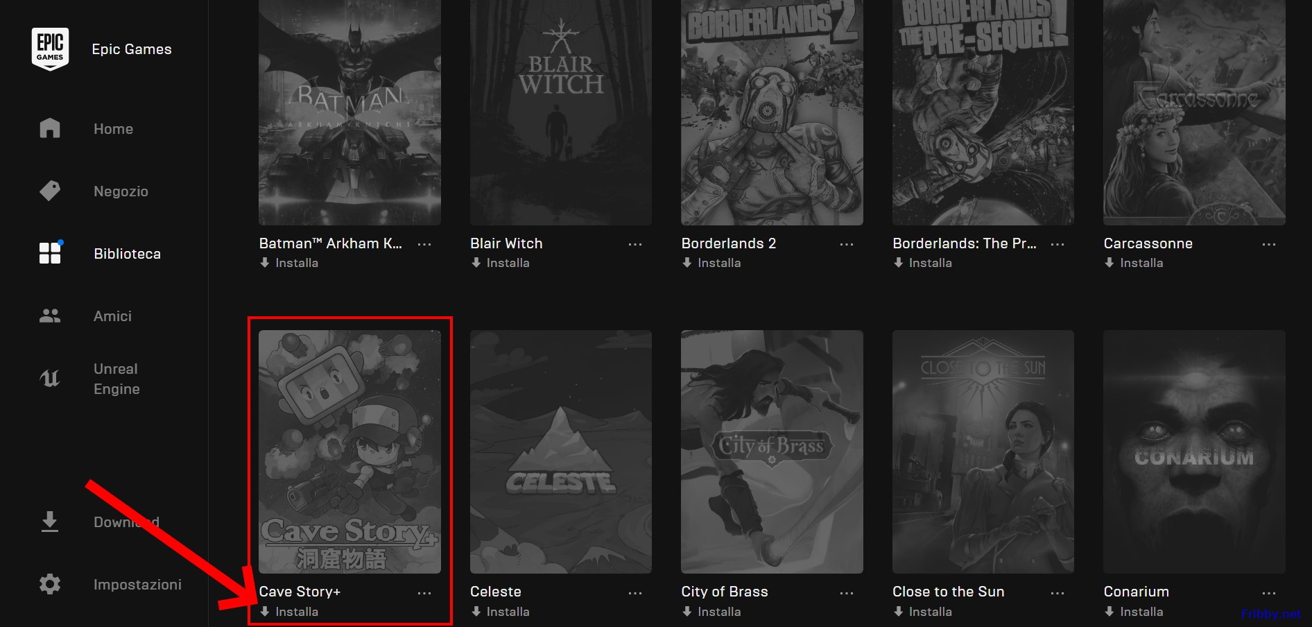 Troverete Cave Story+ nella vostra Biblioteca di Epic, per installarlo basterà cliccare su “Installa”: