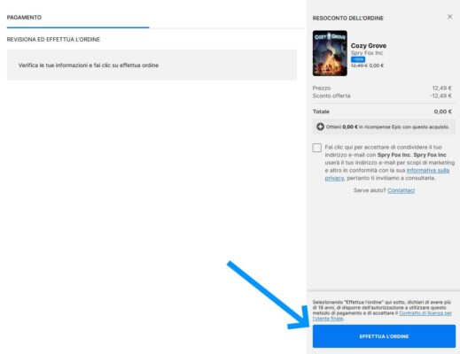 Se non avete ancora effettuato la registrazione dovrete completarla, altrimenti basterà inserire i dati e confermare l’acquisto cliccando su “Effettua l’ordine”: