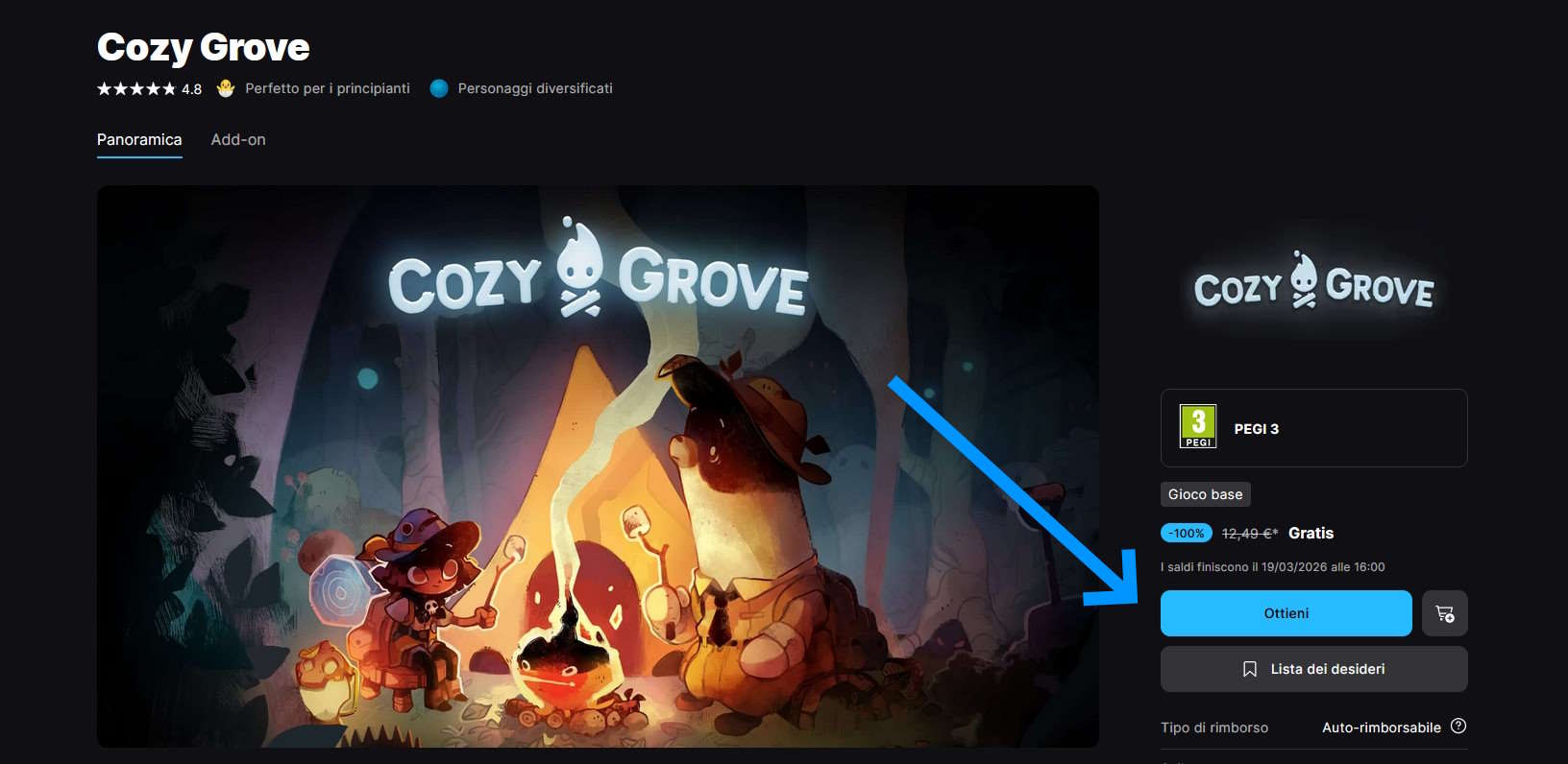 Per ricevere Cozy Grove basta collegarsi alla pagina: store.epicgames.com/it/p/cozy-grove.