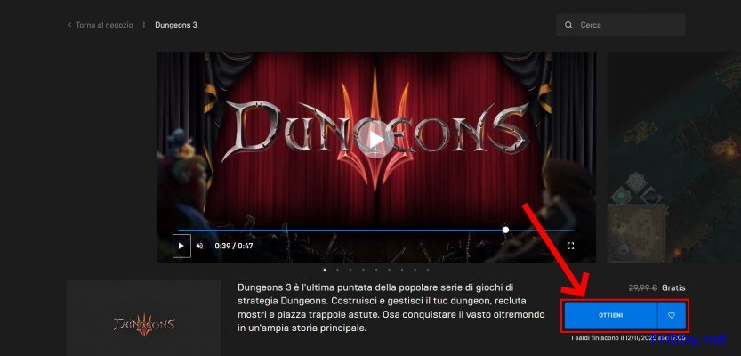Troverai Dungeons 3 nella tua Biblioteca di Epic, per installarlo basterà cliccare su “Installa”: