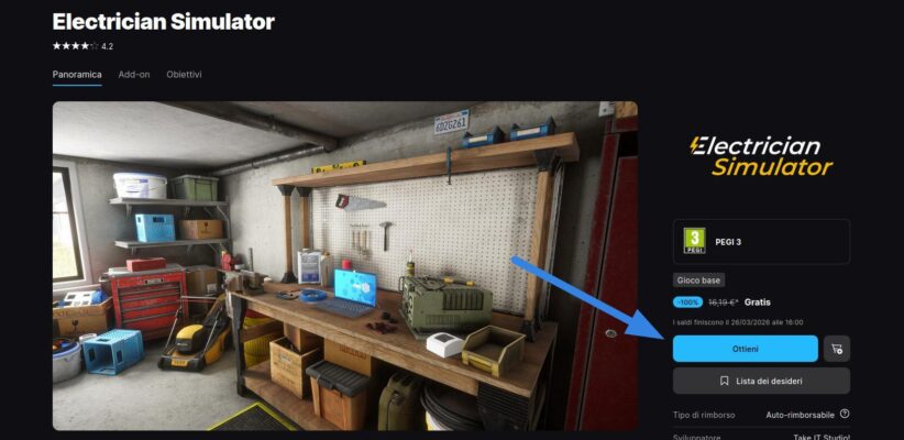 Per ricevere Electrician Simulator basta collegarsi all’ indirizzo web: store.epicgames.com/it/p/electrician-simulator-164e9f.