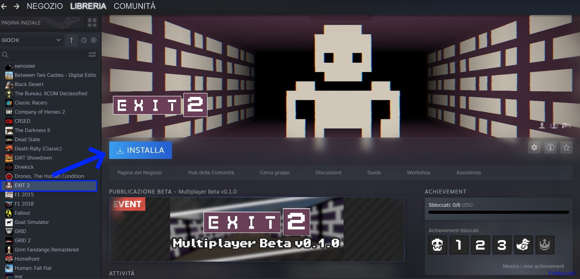 Dopo aver installato ed avviato lo Steam Launcher, il videogame sarà presente nella tua libreria Steam, ti basterà selezionarlo dall’elenco quindi cliccare su “Installa” per avviare il download e quindi l’installazione: