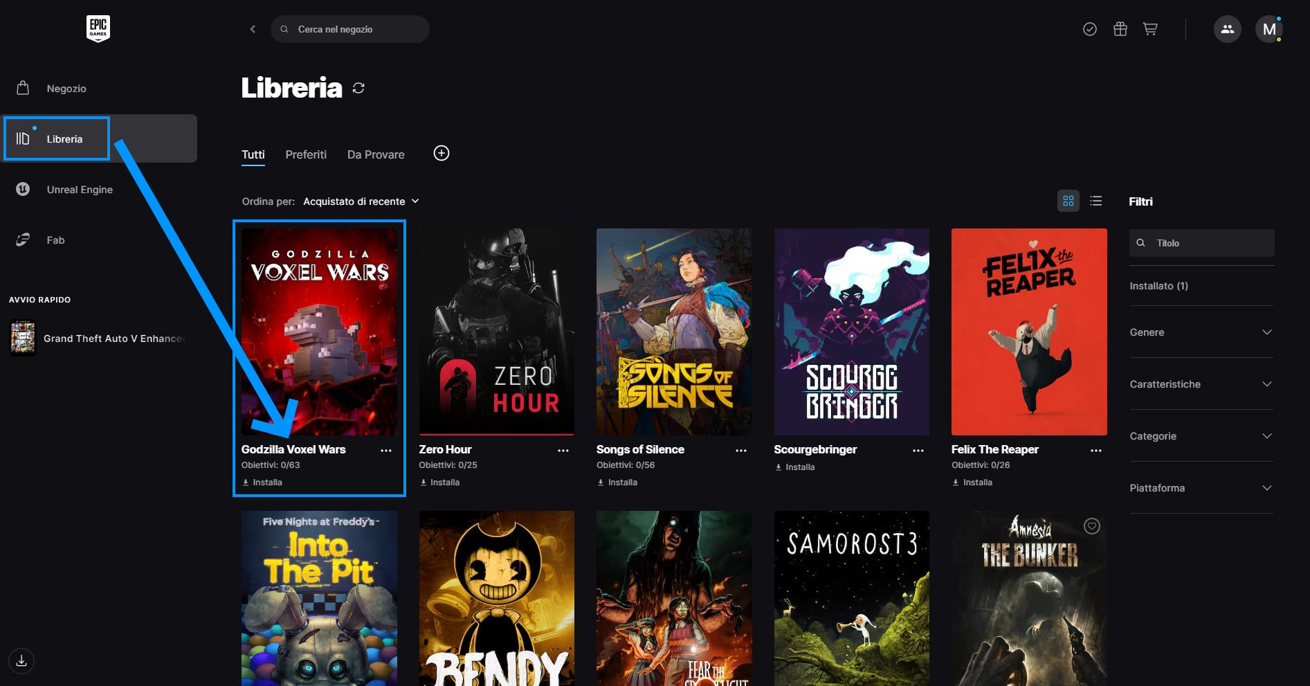 Troverete Godzilla Voxel Wars nella vostra libreria di Epic, per installarlo sarà sufficiente cliccare sulla sua immagine: