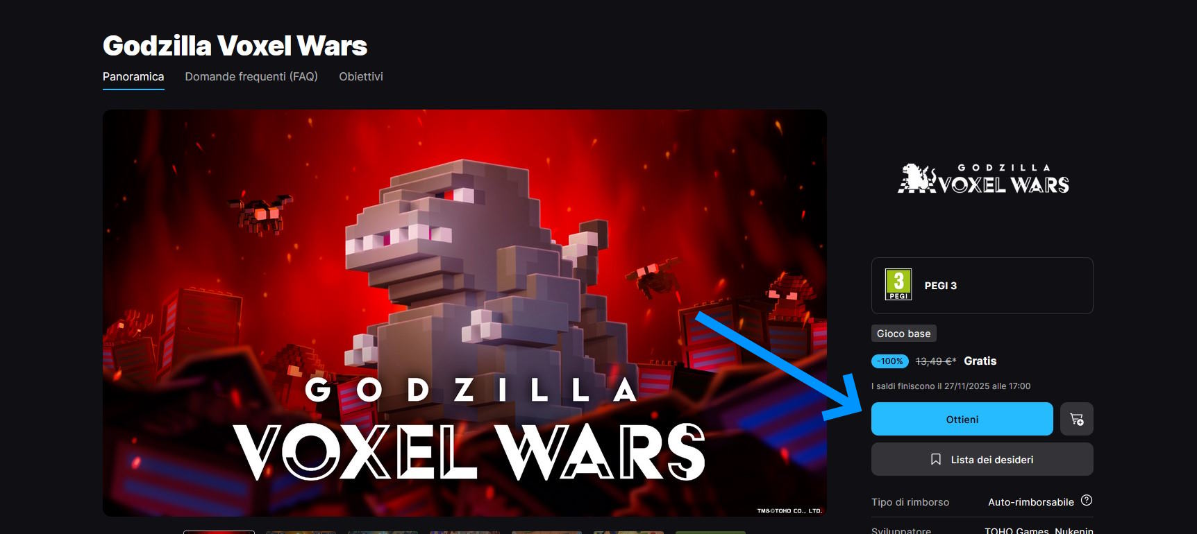 Per ricevere Godzilla Voxel Wars basta collegarsi alla pagina web: store.epicgames.com/it/p/godzillawars-2c30e4.