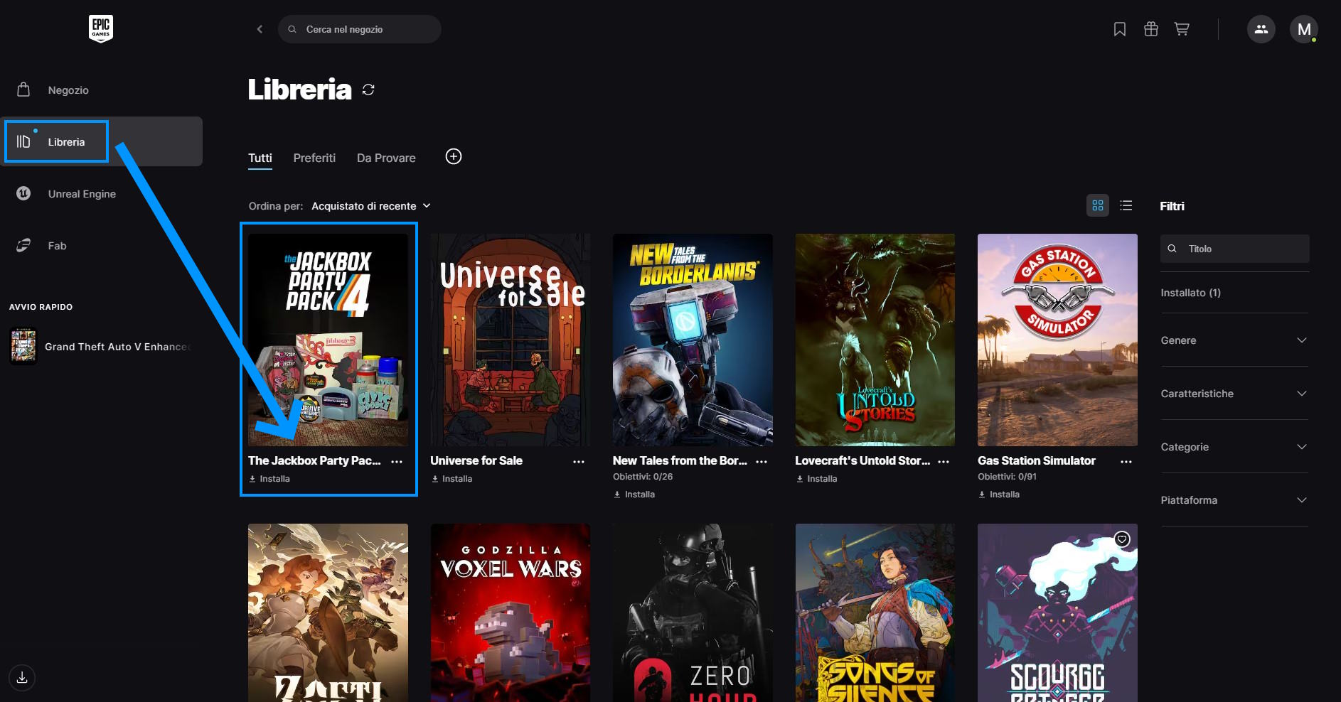 Troverete Jackbox Party Pack 4 nella vostra libreria di Epic, per installarlo sarà sufficiente cliccare sulla sua immagine:
