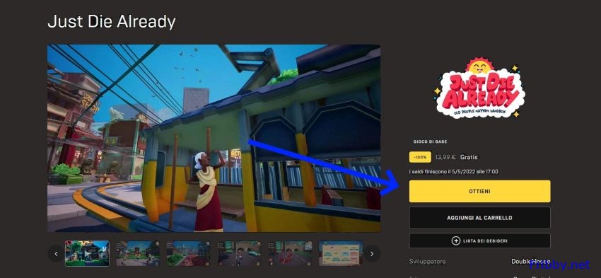 - Just Die Already: è un folle gioco sandbox con protagonisti anziani creato dagli autori di Goat Simulator. Sei vecchio, arrabbiato e ti hanno appena cacciato dalla casa di riposo. Come farai a sopravvivere in un mondo che vuole solo che ti sbrighi a morire?; del valore di €13,99