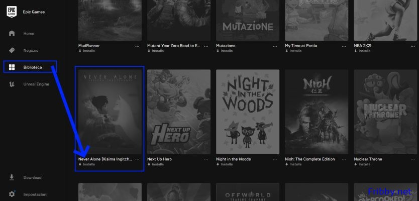 Trovi Never Alone nella tua Biblioteca di Epic, per installarlo devi cliccare su “Installa”: