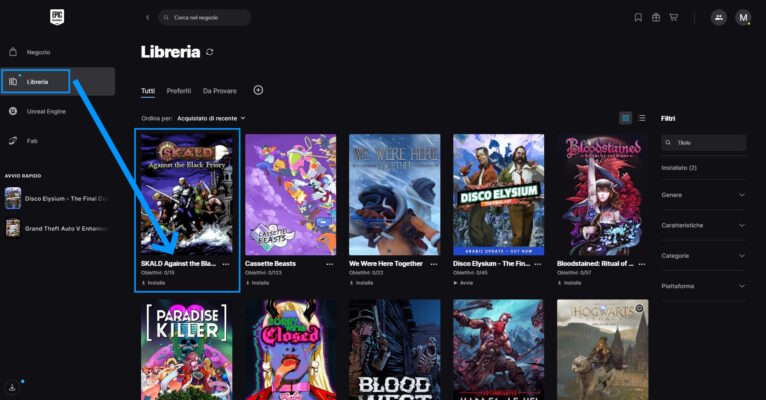 Troverete SKALD Against the Black Priory nella vostra libreria di Epic, per installarlo sarà sufficiente cliccare sulla sua immagine: