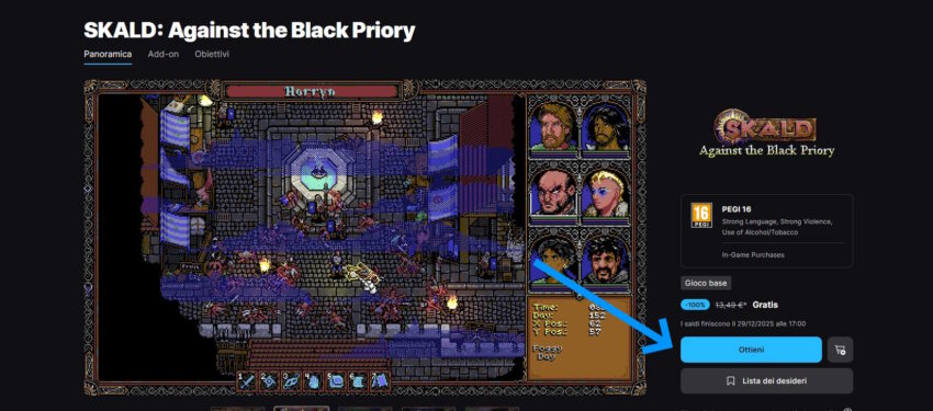 Per ricevere SKALD Against the Black Priory basta collegarsi all’ indirizzo: store.epicgames.com/it/p/skald-against-the-black-priory-cffcc0.
