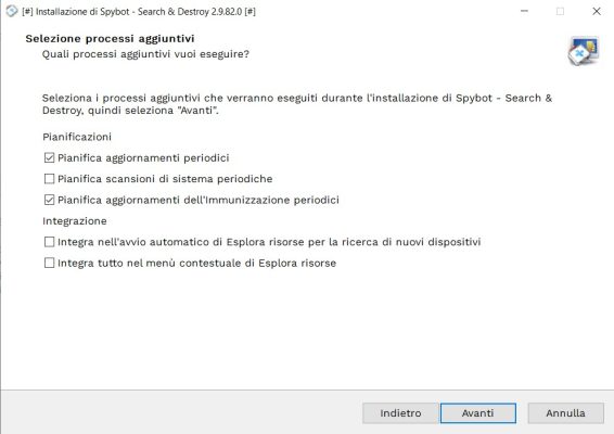 Ora potremo scegliere se installare anche l’antivirus, consiglio di selezionare “Spybot without anti-virus” ed utilizzare l’antivirus integrato in Windows: