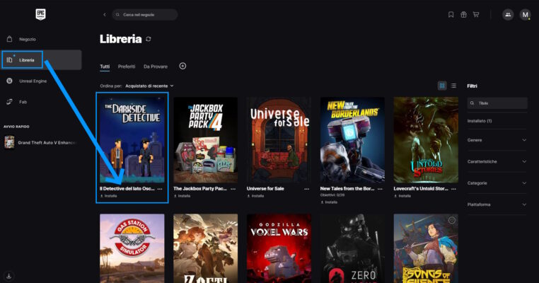 Troverete The Darkside Detective nella vostra libreria di Epic, per installarlo sarà sufficiente cliccare sulla sua immagine: