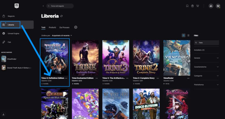 Troverete Trine Classic Collection nella vostra libreria di Epic, per installarlo sarà sufficiente cliccare sulla sua immagine: