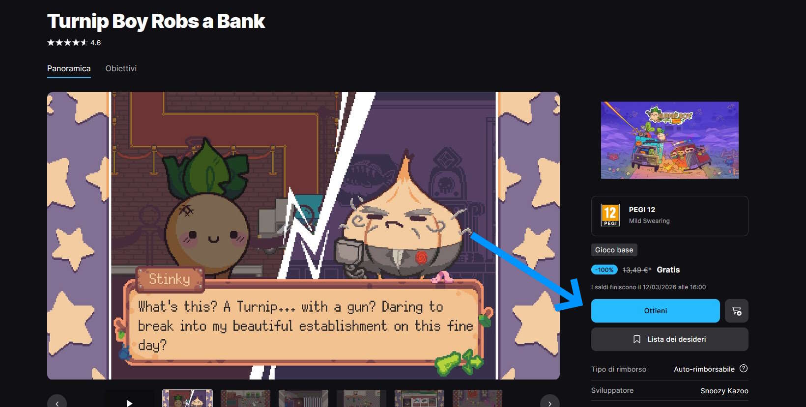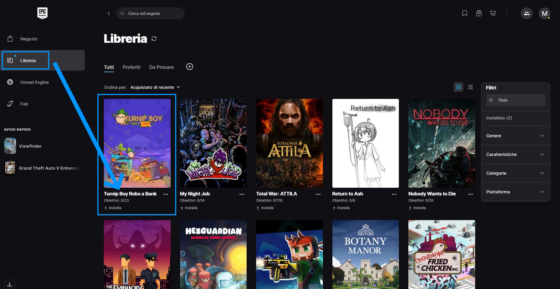 Troverete Turnip Boy Robs a Bank nella vostra libreria di Epic, per installarlo sarà sufficiente cliccare sulla sua immagine:
