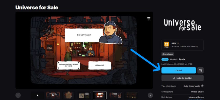 Per ricevere Universe for Sale basta collegarsi alla pagina web: store.epicgames.com/it/p/universe-for-sale-05c53e.