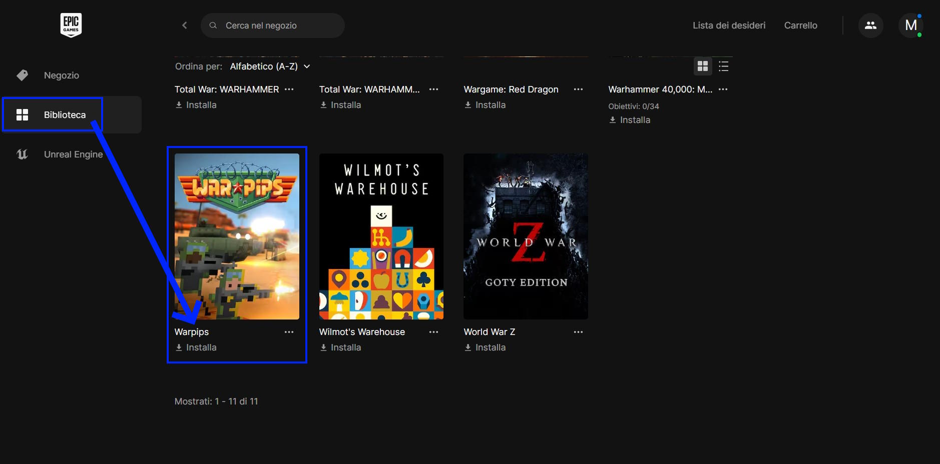 Troverai Warpips nella tua Biblioteca di Epic, per installarli basterà cliccare su “Installa”:
