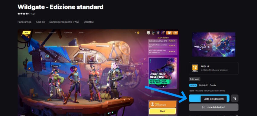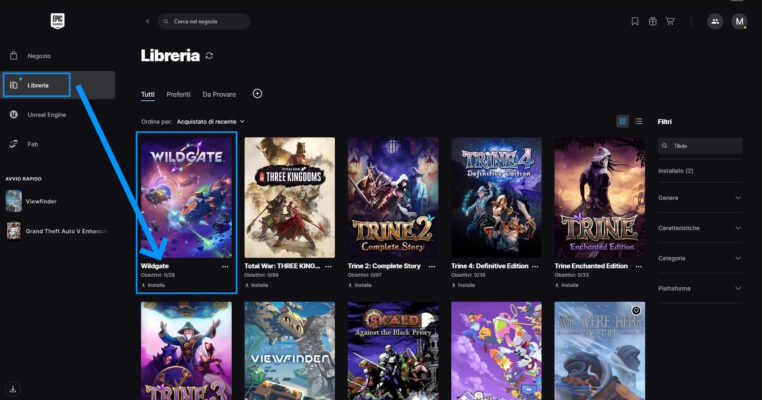 Troverete Wildgate nella vostra libreria di Epic, per installarlo sarà sufficiente cliccare sulla sua immagine: