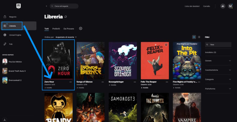 Troverete Zero Hour nella vostra libreria di Epic, per installarlo sarà sufficiente cliccare sulla sua immagine: