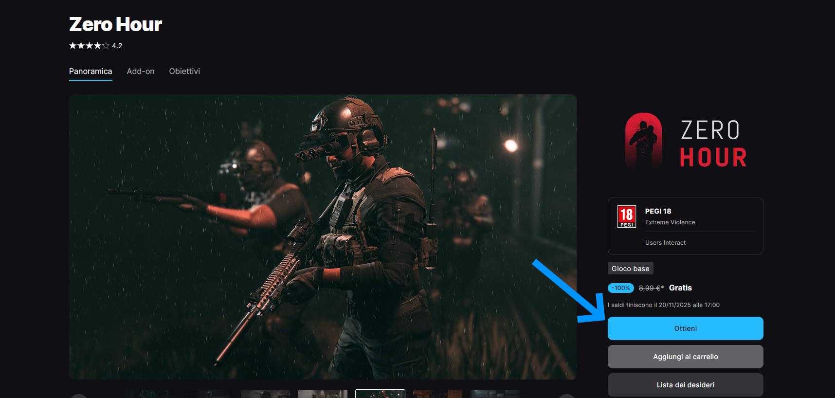 Per ricevere Zero Hour basta collegarsi al sito web: store.epicgames.com/it/p/zero-hour-8449a0.